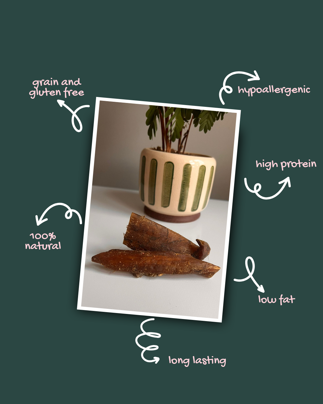 These long lasting chews provide excellent release of endorphins, as well as helping to reduce boredom while supporting dental hygiene. The chewing action helps promote saliva production and may assist in reducing plaque and tartar build up, contributing to cleaner, healthier teeth.
